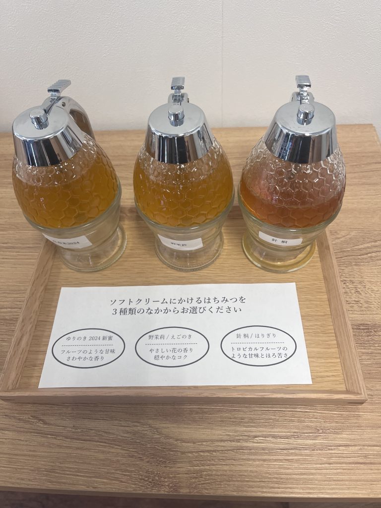 はちみつ直売カフェ 森と蜂と グルメ X Facebook はてブ Pocket LINE コピー 2024.11.18 オーガニック、非加熱、花の香りが生きている新感覚のはちみつを作っている農家さんが経営しているお店。地元の乳牛を使ったソフトクリームにはちみつをトッピング。全国大会でも賞を獲得しているとのこと。秋保でこんなにも美味しいはちみつが獲れるとは知りませんでした。
